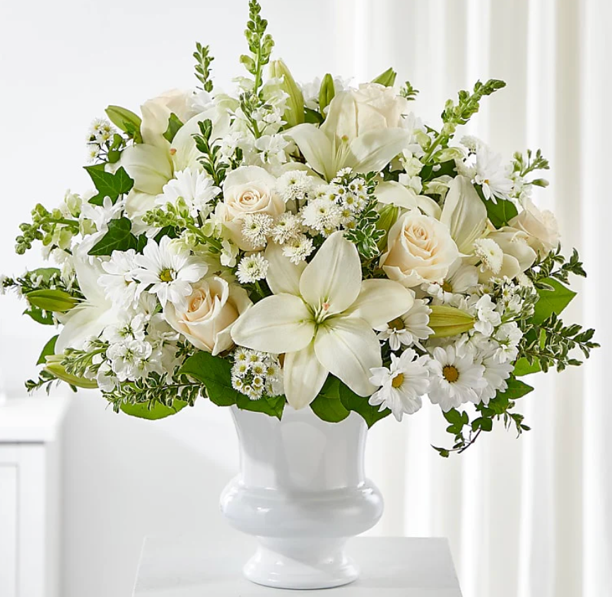 A vibrant and elegant arrangement featuring roses, fragrant stock, tall snapdragons, cheerful daisies, graceful lilies, and delicate asters. This beautiful combination of blooms symbolizes love, strength, peace, and remembrance, creating a heartfelt tribute that radiates warmth and comfort. Perfect for honoring special moments and expressing deep emotions.