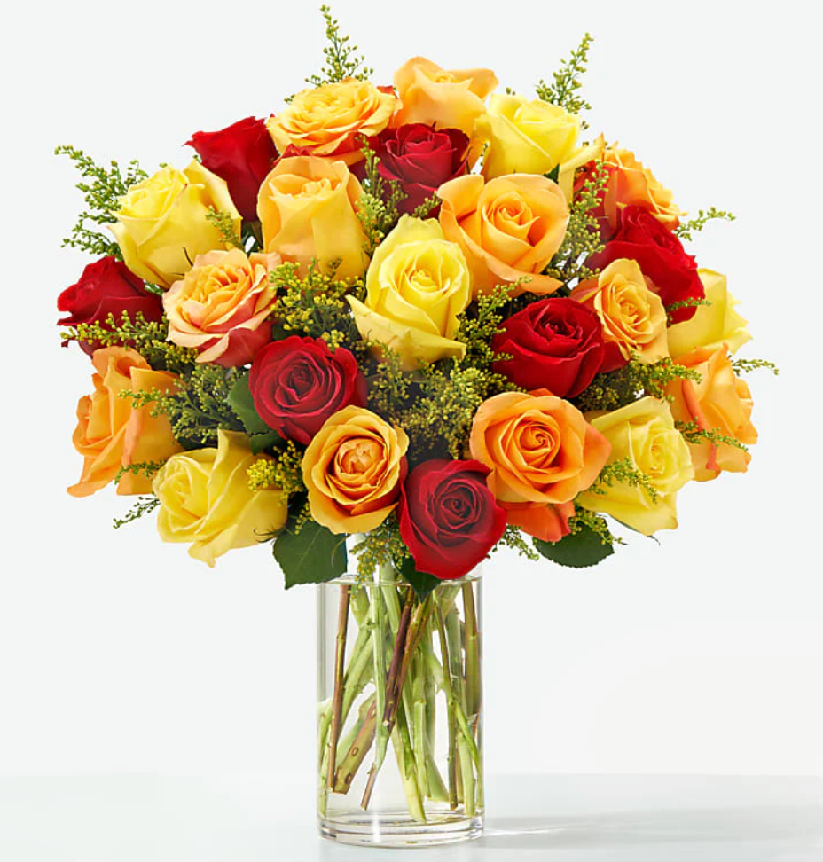 Turn up the heat with this bouquet’s stunning roses in fiery, passionate shades—perfect for making a bold and unforgettable statement.